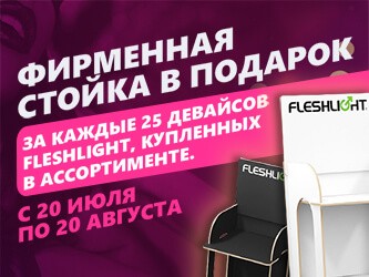 C 20 июля по 20 августа получите фирменную стойку в подарок за каждые 25 девайсов «FleshLight», купленных в ассортименте!