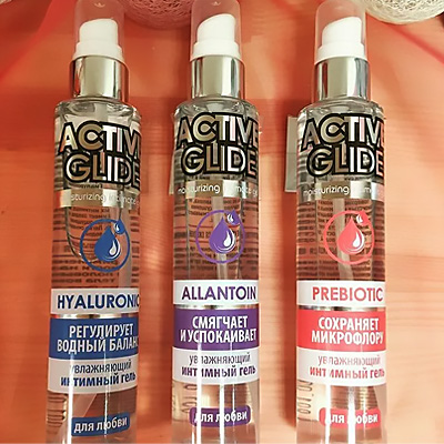 В состав интимных средств Active Glide входят активные природные компоненты – пребиотик биолин, аллантоин, гиалуроновая кислота, благодаря которым любриканты действуют максимально эффективно.