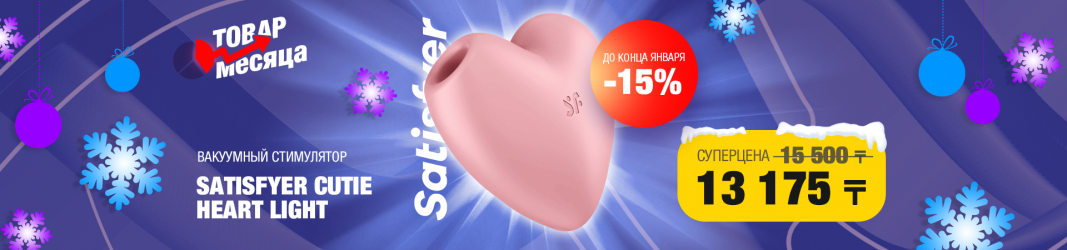 Мы рады предложить вам эксклюзивную скидку в рамках акции "Товар месяца" в январе. Весь месяц вакуумный стимулятор Cutie Heart light от немецкого бренда Satisfyer в розовом цвете доступен со скидкой 15%, всего за 13 175 тг.