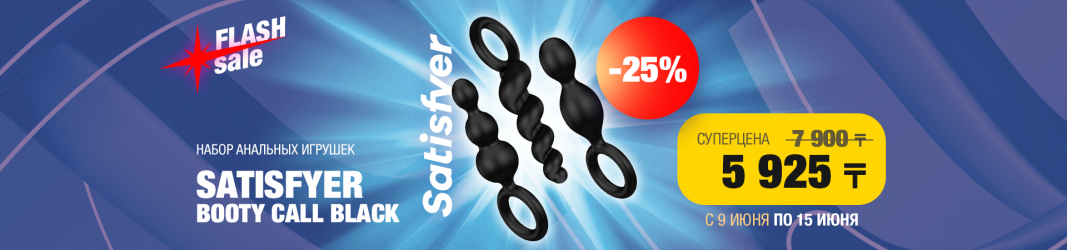 С 9 по 15 июня — специальное предложение на хит продаж Satisfyer Booty Call в чёрном цвете. Набор из 3 анальных плагов по привлекательной цене — всего 5 925 ₸ вместо 7 900 ₸.