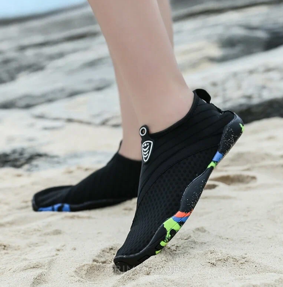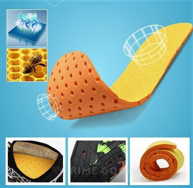 Верх изготовлен из эластичного и дышащего материала, который быстро сохнет, плотно фиксирует ногу и не натирает даже при длительном ношении. Унисекс-дизайн делает модель подходящей для мужчин и женщин.