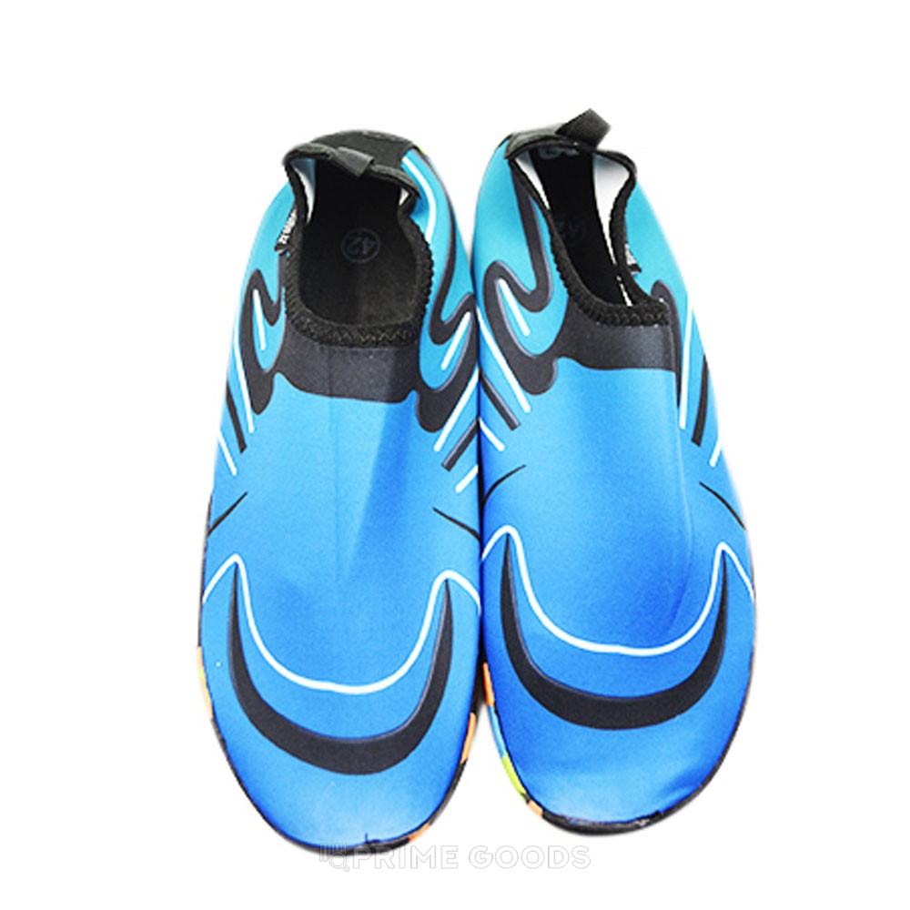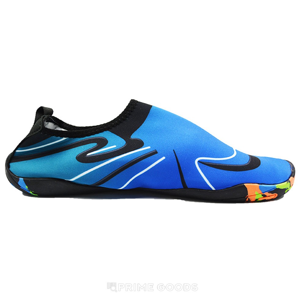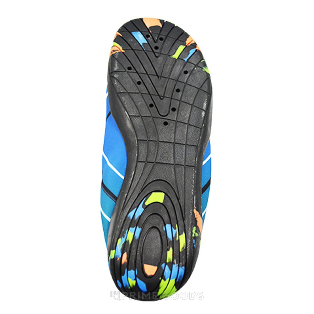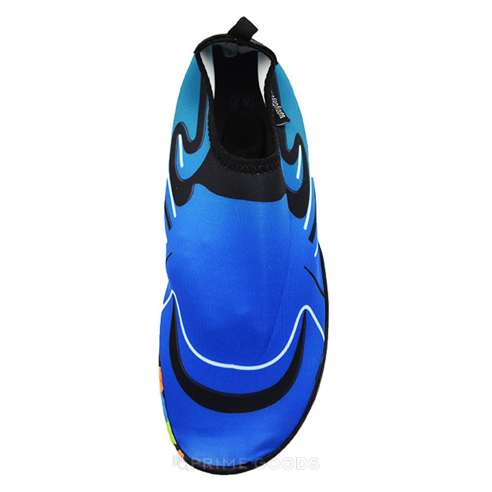 Подошва из прочного и эластичного материала создаёт надёжное сцепление с поверхностью, предотвращая скольжение. Аквашузы быстро сохнут и легко надеваются благодаря мягкой эластичной манжете. Синий цвет и волнообразный принт добавляют динамичности, делая модель стильным элементом летнего гардероба.