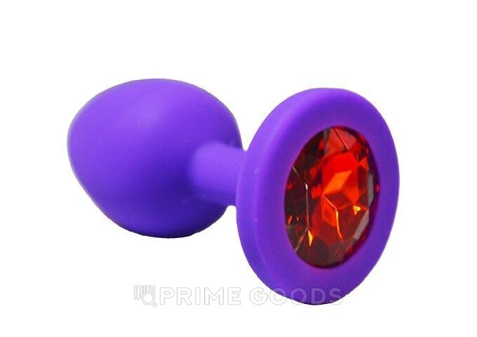 Анальная пробка из фиолетового силикона с красным кристаллом (размер S)