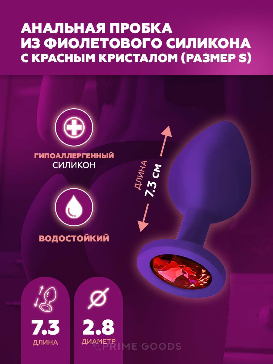 - Анальная пробка из фиолетового силикона с красным кристаллом (размер S)