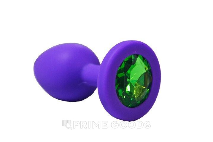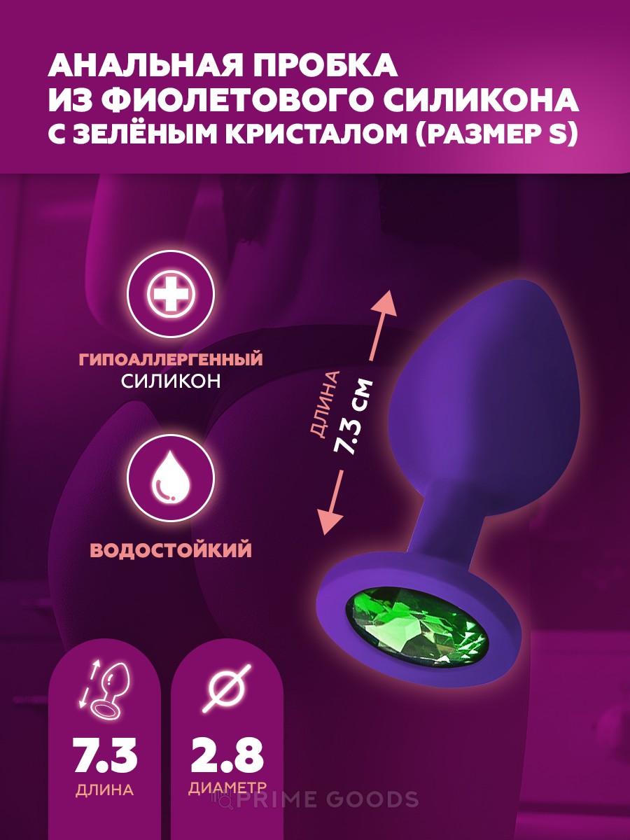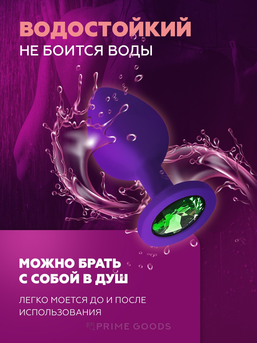 - Анальная пробка из фиолетового силикона с зелёным кристаллом (размер S)