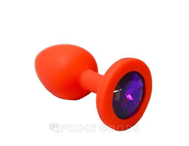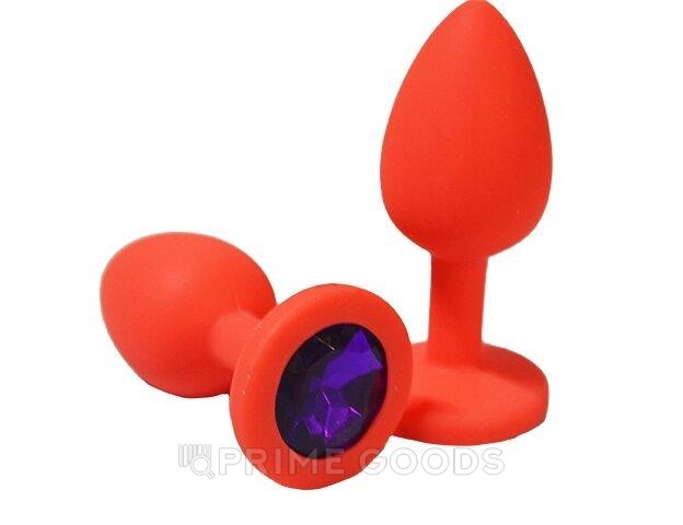 Анальная пробка из красного силикона с фиолетовым кристаллом (размер S)