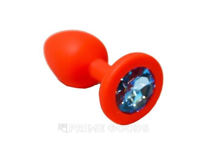 Анальная пробка из красного силикона с голубым кристаллом (размер S)