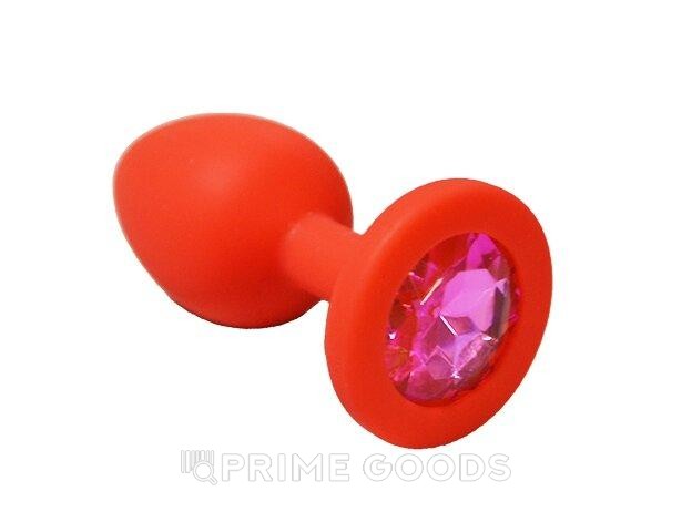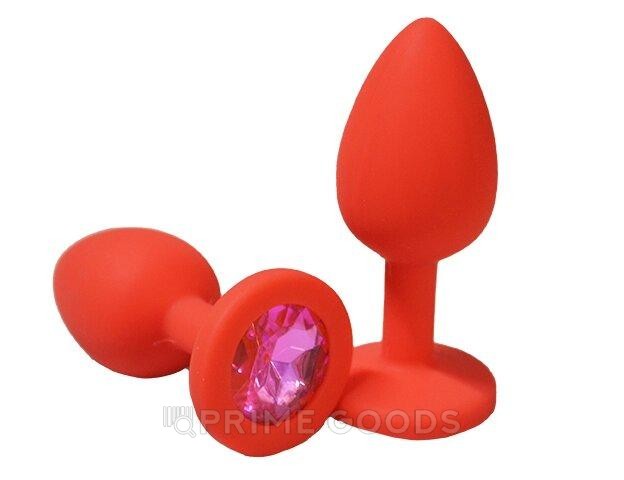 Анальная пробка из красного силикона с розовым кристаллом (размер S)