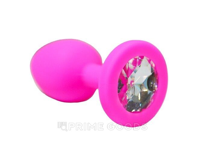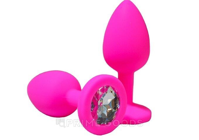 Анальная пробка из розового силикона с белым кристаллом, S