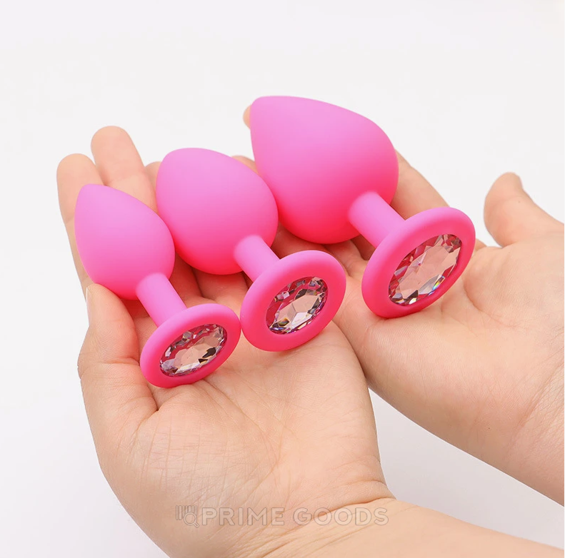 - Анальная пробка из розового силикона с белым кристаллом (размер S)