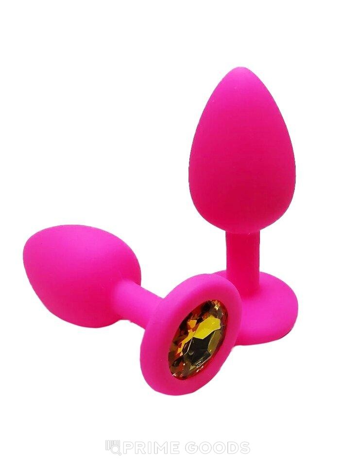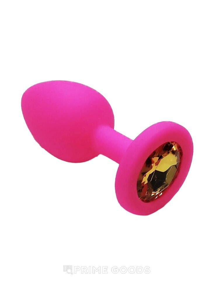 Анальная пробка из розового силикона с жёлтым кристаллом (размер S)