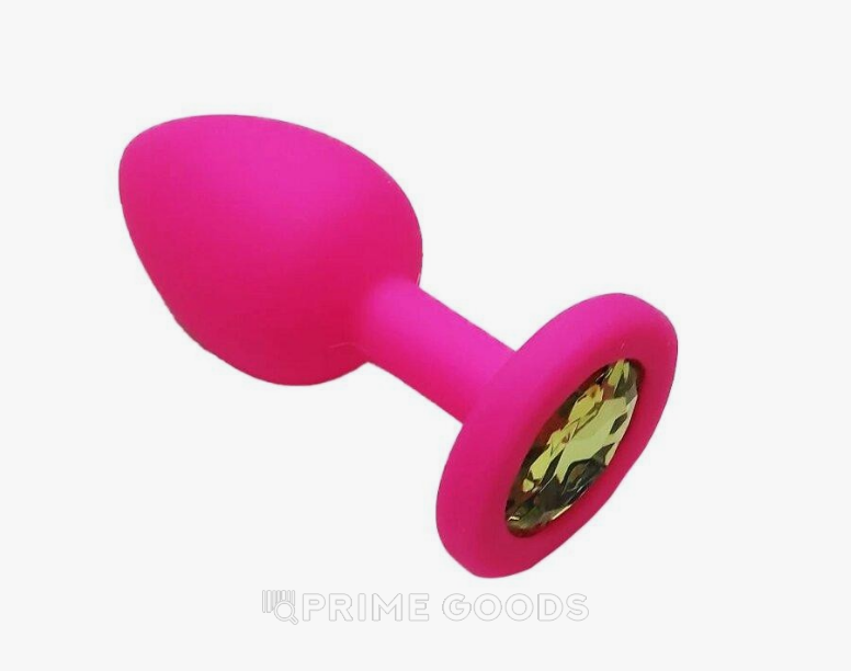 Анальная пробка из розового силикона с жёлтым кристаллом