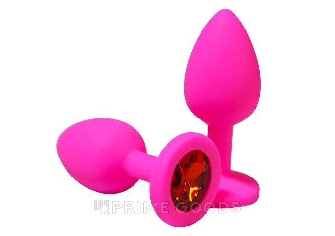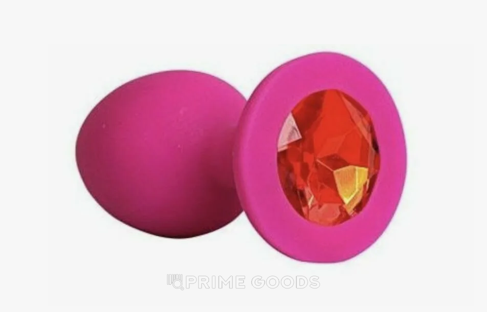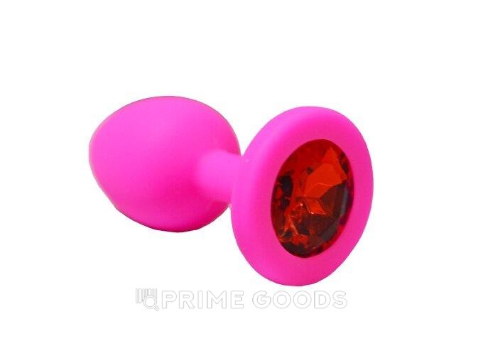 Анальная пробка из розового силикона с красным кристаллом (размер S)