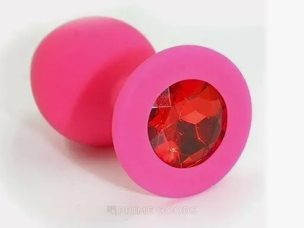 Анальная пробка из розового силикона с красным кристаллом