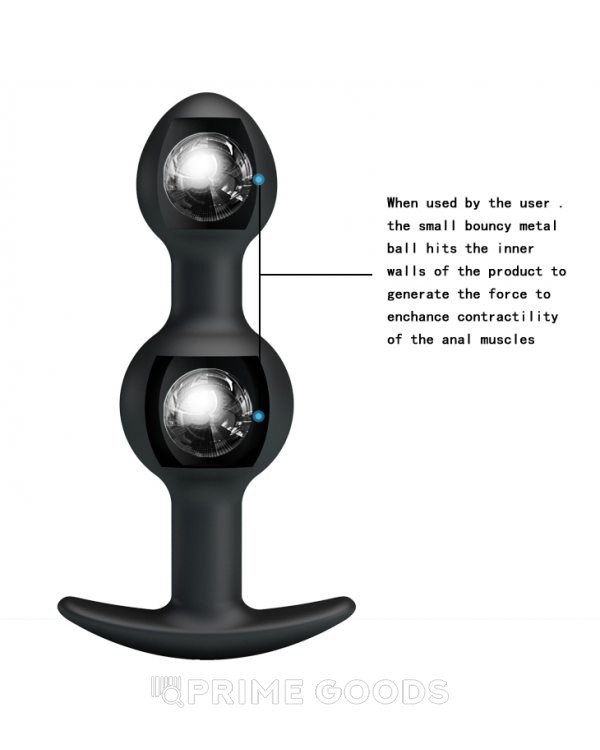 Изготовлен из приятного на ощупь гипоаллергенного силикона в классическом чёрном цвете. Эргономичная форма обеспечивает деликатное и комфортное введение. Внутри плага расположены два металлических шарика со смещённым центром тяжести. Во время фрикций они двигаются, создавая эффект чувственной вибрации. Для безопасного использования и контроля глубины проникновения на основании предусмотрен надёжный ограничитель.