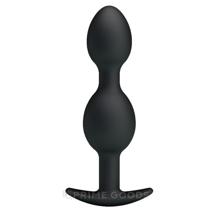 Анальный стимулятор с металлическими шариками, силиконовый, с ограничителем