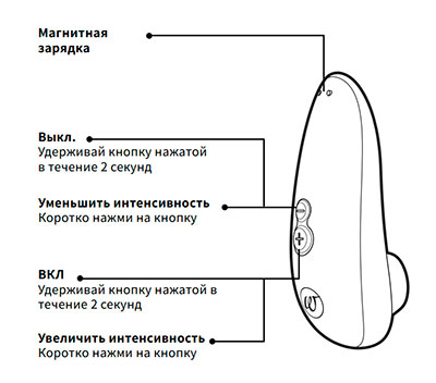 - Регулировка интенсивности: с помощью кнопок "+" и "–" выберите желаемый уровень стимуляции.