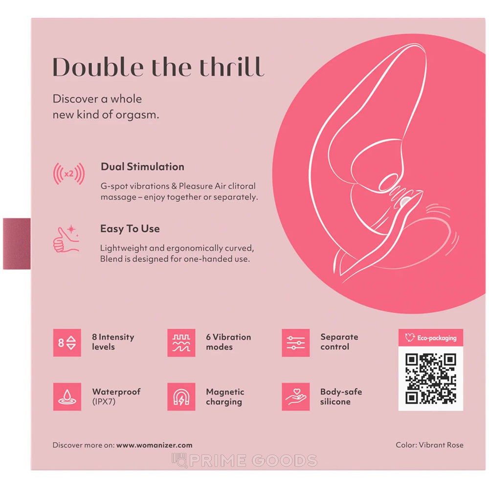 Испытайте смешанное интимное удовольствие с инновационным вибромассажером Blend от немецкого бренда премиум-класса Womanizer, созданным для невообразимой двойной стимуляции, способной превратить ваше одиночное времяпрепровождение в буйство наслаждений!