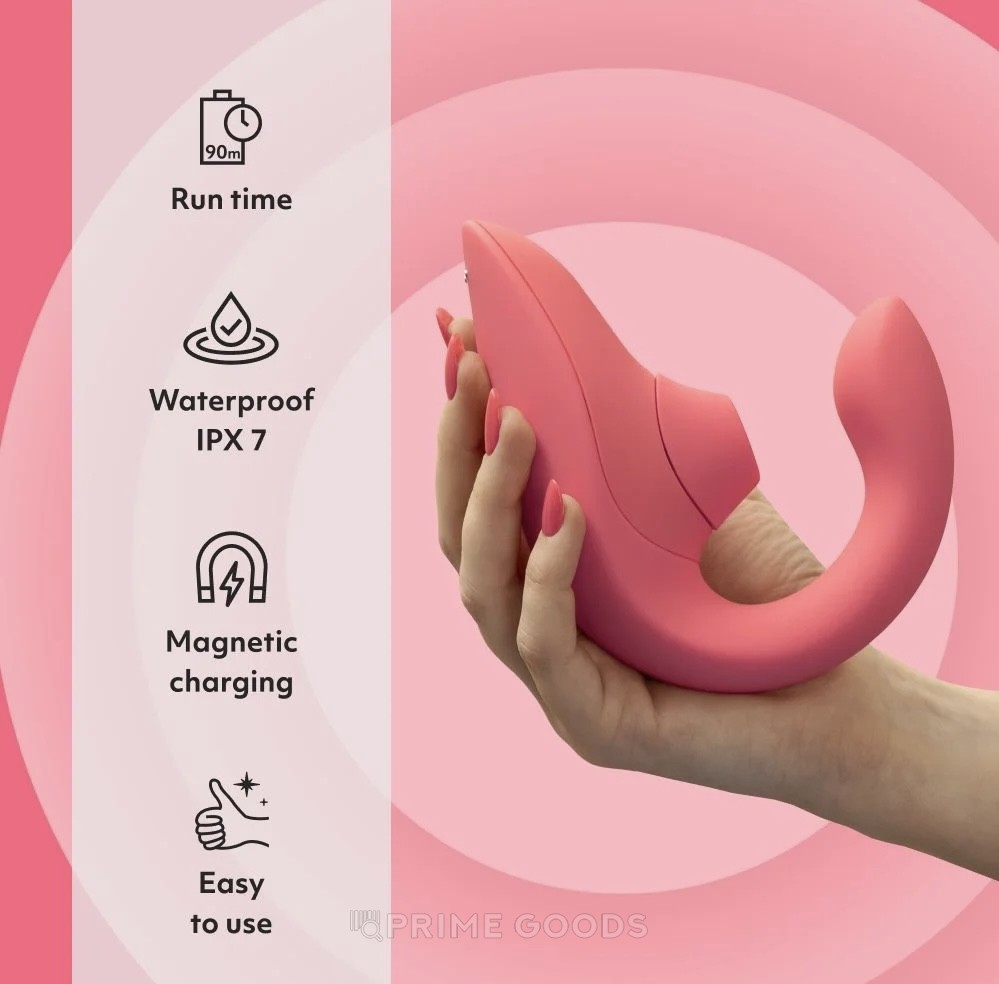 Он учел в себе анатомические особенности женского строения и имеет эргономичную гибкую форму, благодаря чему вы будете нежиться в чувственной истоме от одновременного воздействия с фееричным завершением. Пока основной отросток массажирует таинственную точку G глубокими вибрациями, воздушные волны, исходящие от технологии Pleasure Air обласкают клиторальную зону. Такая комбинация не оставит ни одну прекрасную даму равнодушной и заставит абсолютно каждую содрогаться от многогранных оргазмов снова и снова.