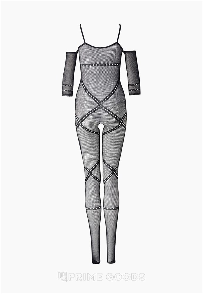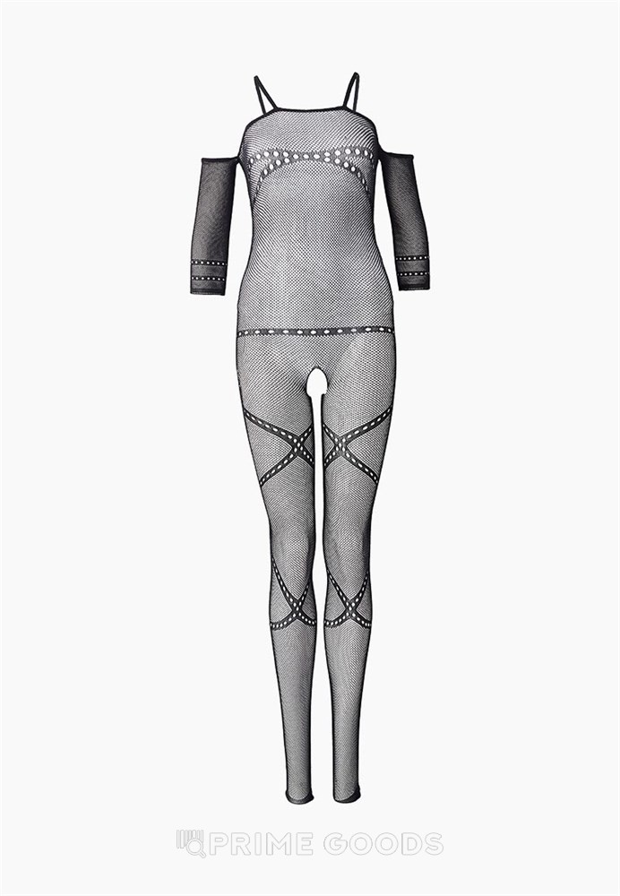 Мелкая сетка и пересекающиеся узоры на груди и ногах будут фантазийно смотреться на вашем теле. Длинный рукав и открытые плечи сделают верх утонченным, а изюминкой во всей этой прелести выступит открытый доступ, позволяющий предаться сексуальной близости не снимая изделия. Ведь в порыве страсти это идеальное решение!