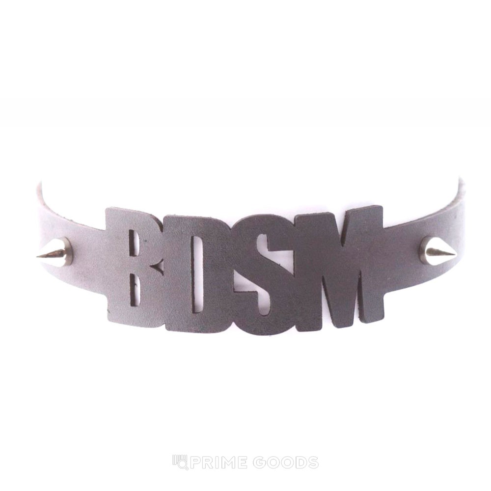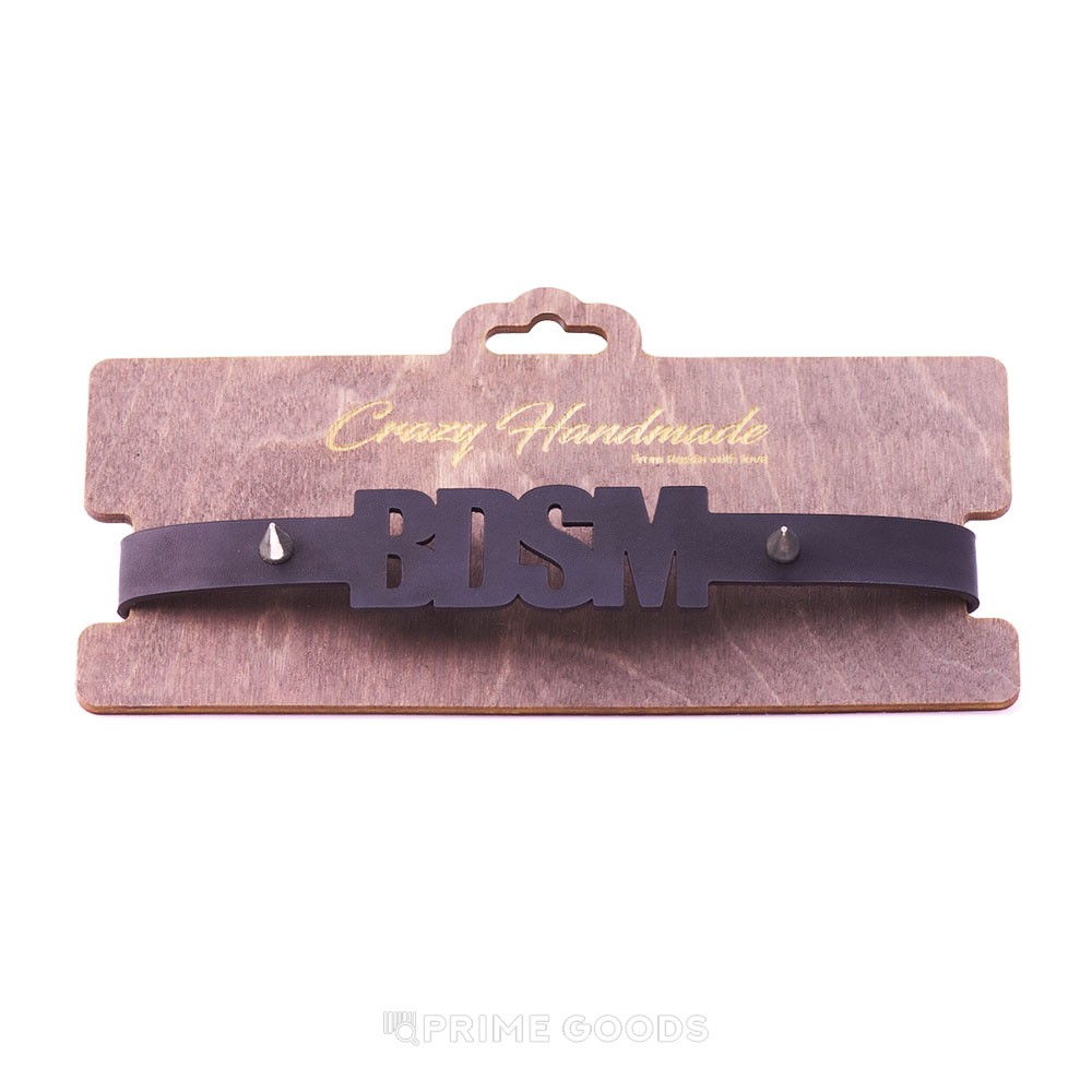 Центральный акцент — резной элемент в виде аббревиатуры «BDSM», подчёркивающий смелость и откровенность образа. Металлические шипы служат ярким декоративным элементом, создавая атмосферу бунтарской страсти и подчёркивая индивидуальность владельца.