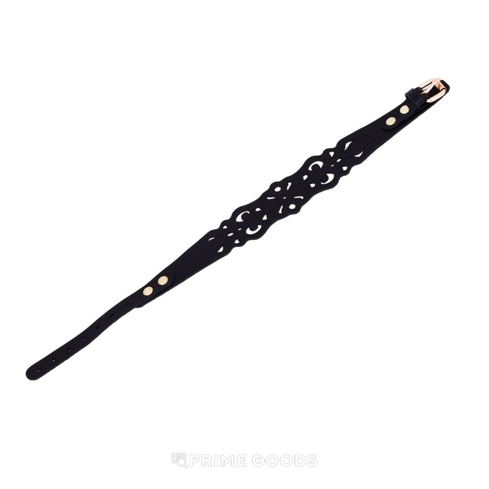 - Чокер из черной кожи с узорами и золотой фурнитурой