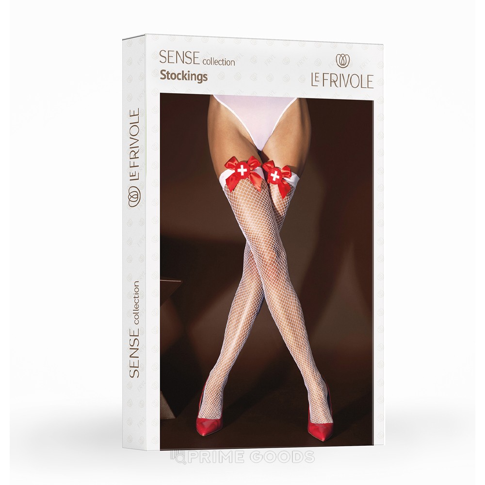 Белые чулки в сетку из коллекции Sense от бренда Le Frivole — эффектный аксессуар для создания игривого и соблазнительного ролевого образа. Классический мотив медсестры в современной интерпретации добавляет образу пикантности и визуальной выразительности.