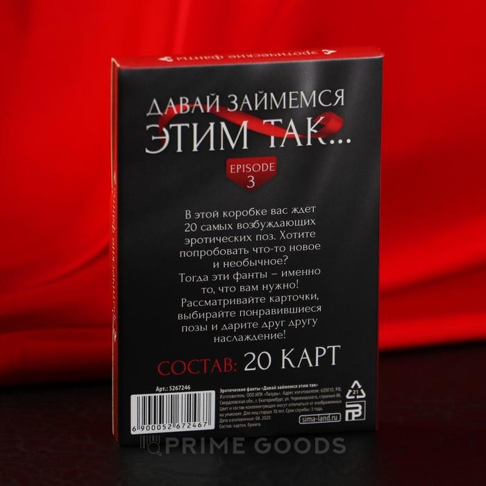 В наборе 20 карточек с оригинальными позами для воплощения. Тяните их по очереди, следуйте инструкции и позвольте телам говорить за вас. Каждая попытка — шаг к взаимному удовольствию и откровенной страсти.