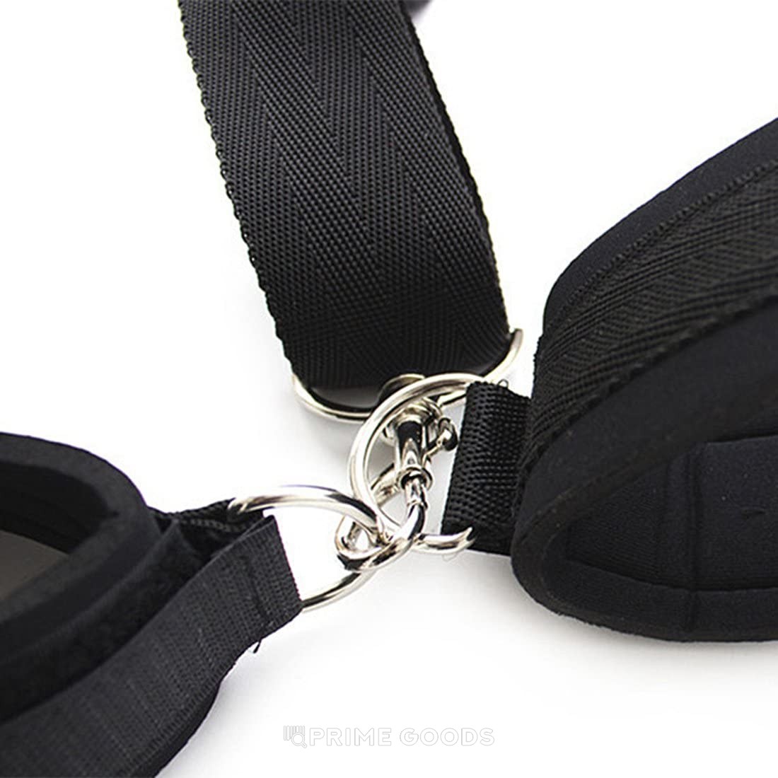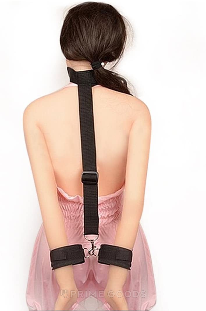 Модель выполнена на ременной системе с возможностью регулировки длины для рук и шеи, что позволяет точно настроить посадку под индивидуальные параметры. Конструкция объединяет наручники и ошейник в единый фиксатор, обеспечивая стабильное положение головы и рук без необходимости использования дополнительных аксессуаров.