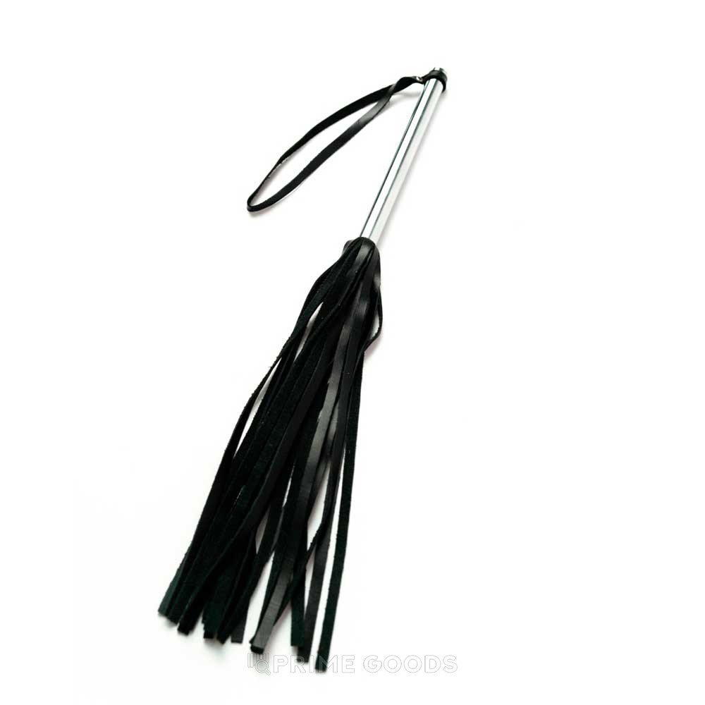 - Флоггер из черной кожи с хромированной ручкой