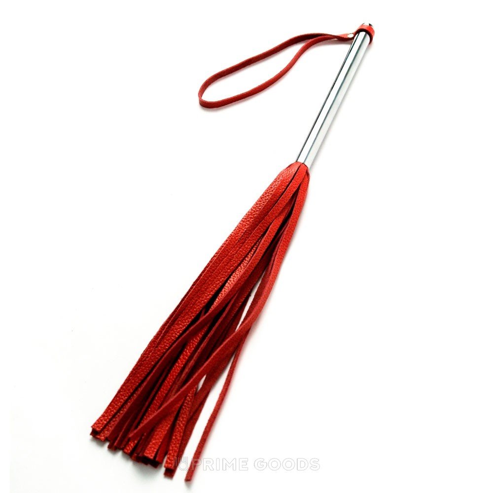 - Флоггер из красной кожи с хромированной ручкой