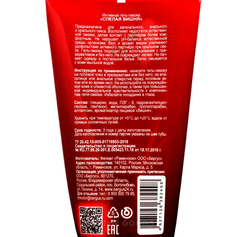 Лубрикант на водной основе имеет лёгкую текстуру и приятный вишнёвый аромат. Его гипоаллергенный состав снижает риск раздражений, а противовоспалительные компоненты заботятся о коже. Продукт обеспечивает гладкие ощущения, не оставляет следов на белье и легко смывается водой.