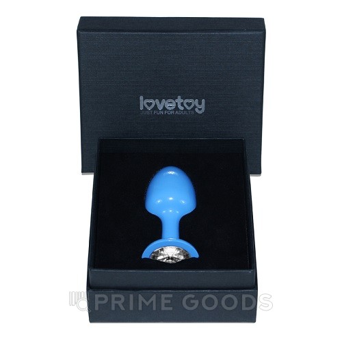 Голубая анальная пробка с белым кристаллом от Lovetoy