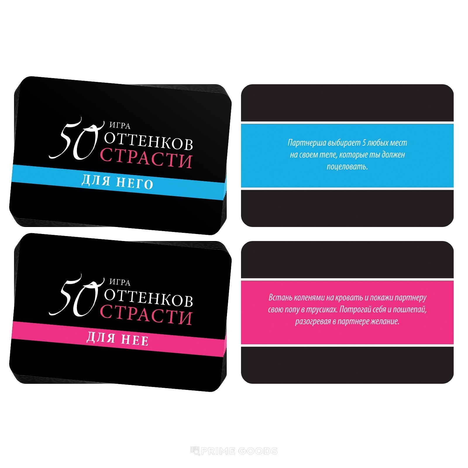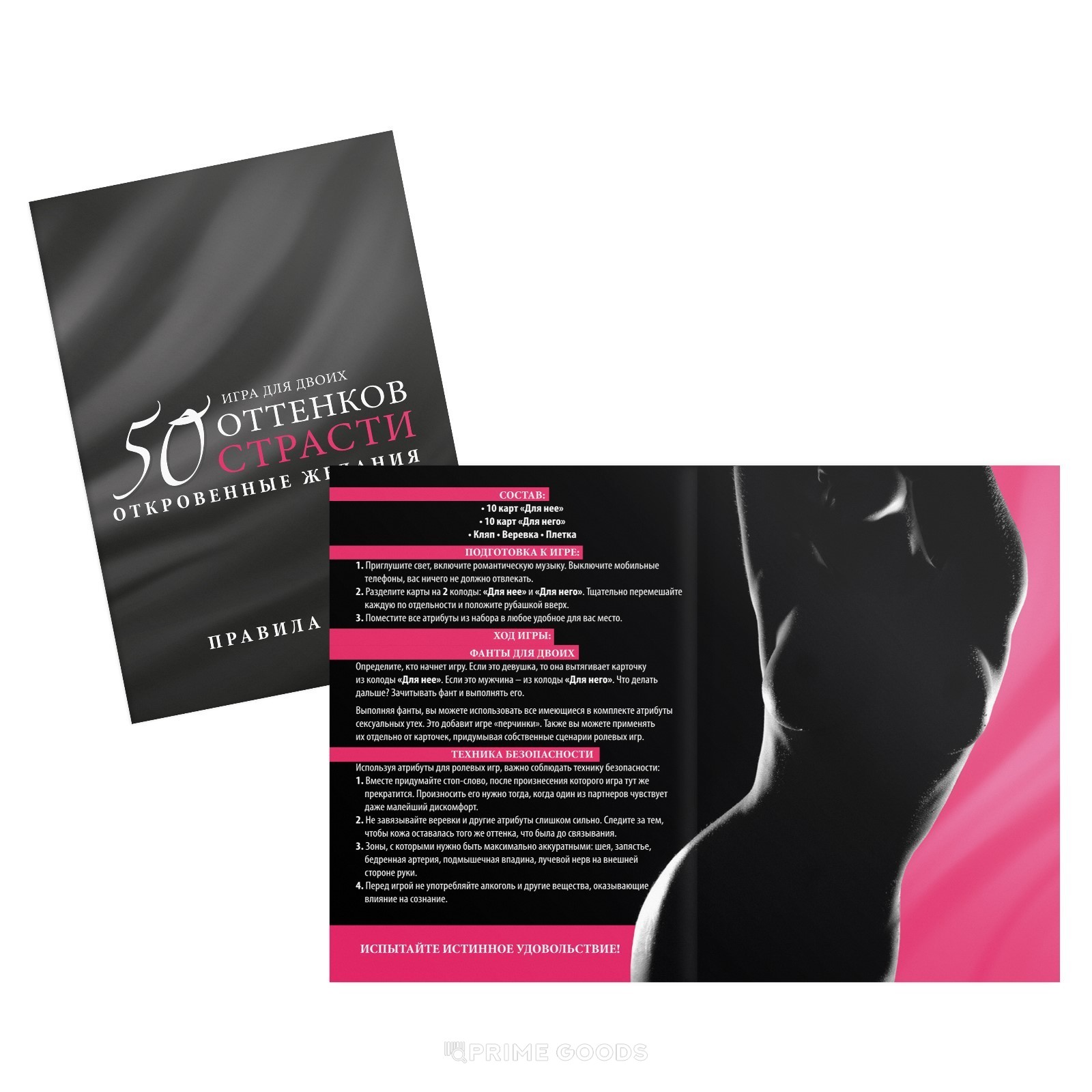 «50 оттенков страсти. Откровенные желания» — это тематический набор для пар, которые хотят исследовать границы ролевых игр и добавить в отношения элементы контроля и доверия. Он подойдёт как новичкам, так и тем, кто уже знаком с такими форматами взаимодействия.