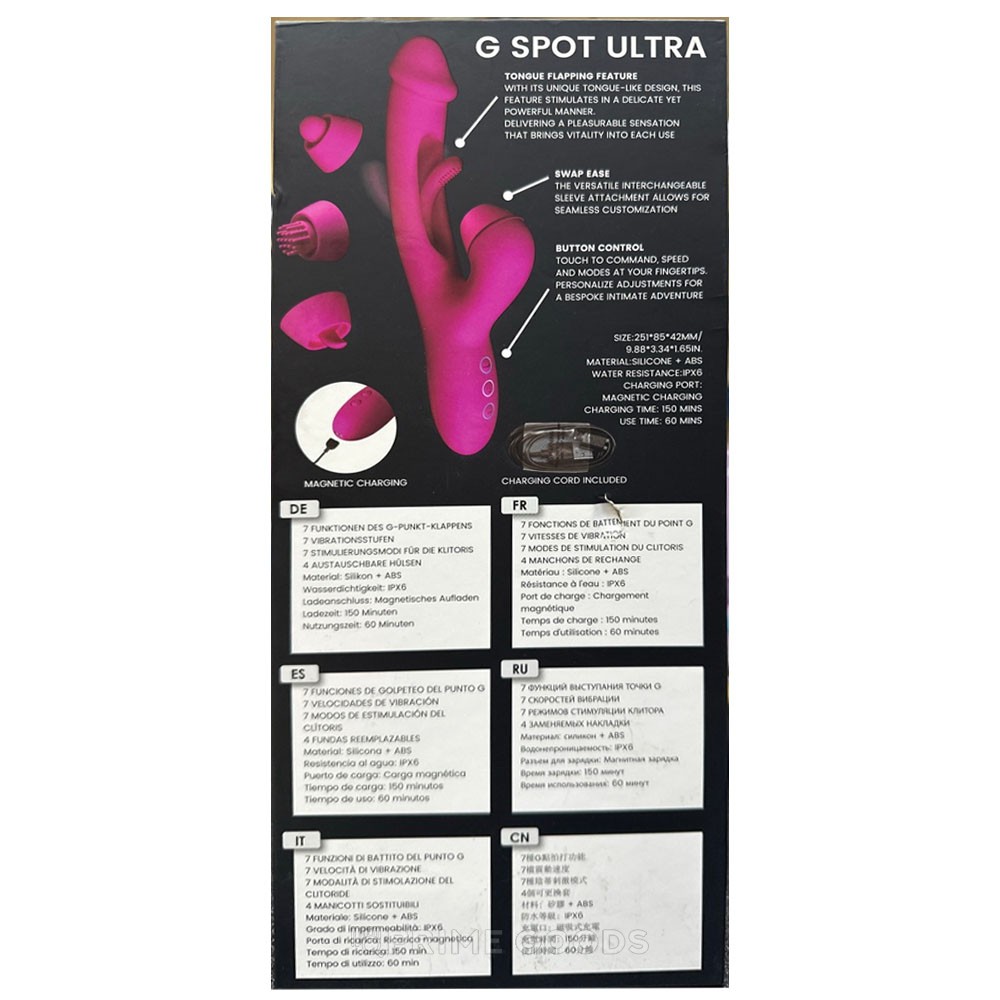 Инновационный вибратор G Spot Ultra от Amovibe с осцилляцией, вакуумной стимуляцией и поступательными движениями. Управление через приложение, сменные насадки, бесшумная работа и водонепроницаемый корпус.
