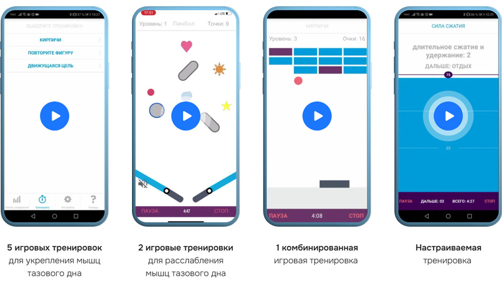 - Автонастройка программы тренировок по мере укрепления мышц
