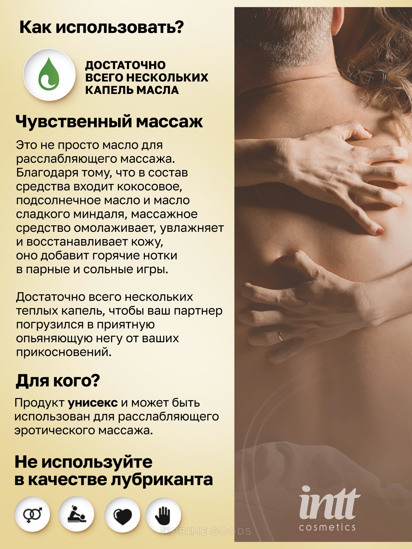 Важно: массажное масло не предназначено для использования в качестве лубриканта.