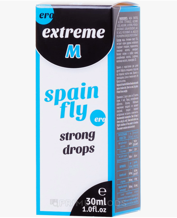 Капли для мужчин Spain Fly Extreme Men – это биологически активная добавка, разработанная для усиления сексуального влечения и улучшения потенции. Активное действующее вещество – экстракт корня дудника китайского – оказывает успокаивающее воздействие на центральную нервную систему, а феруловая кислота в его составе стимулирует кровообращение и потенцию.