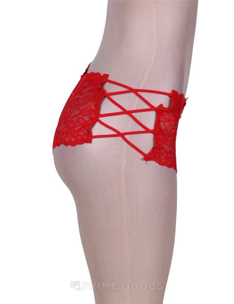 Кружевные трусики с шнуровкой на высокой посадке, красные, XS-S