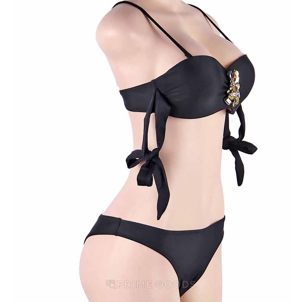 Купальник с завязками Rhinestone Black (XL)
