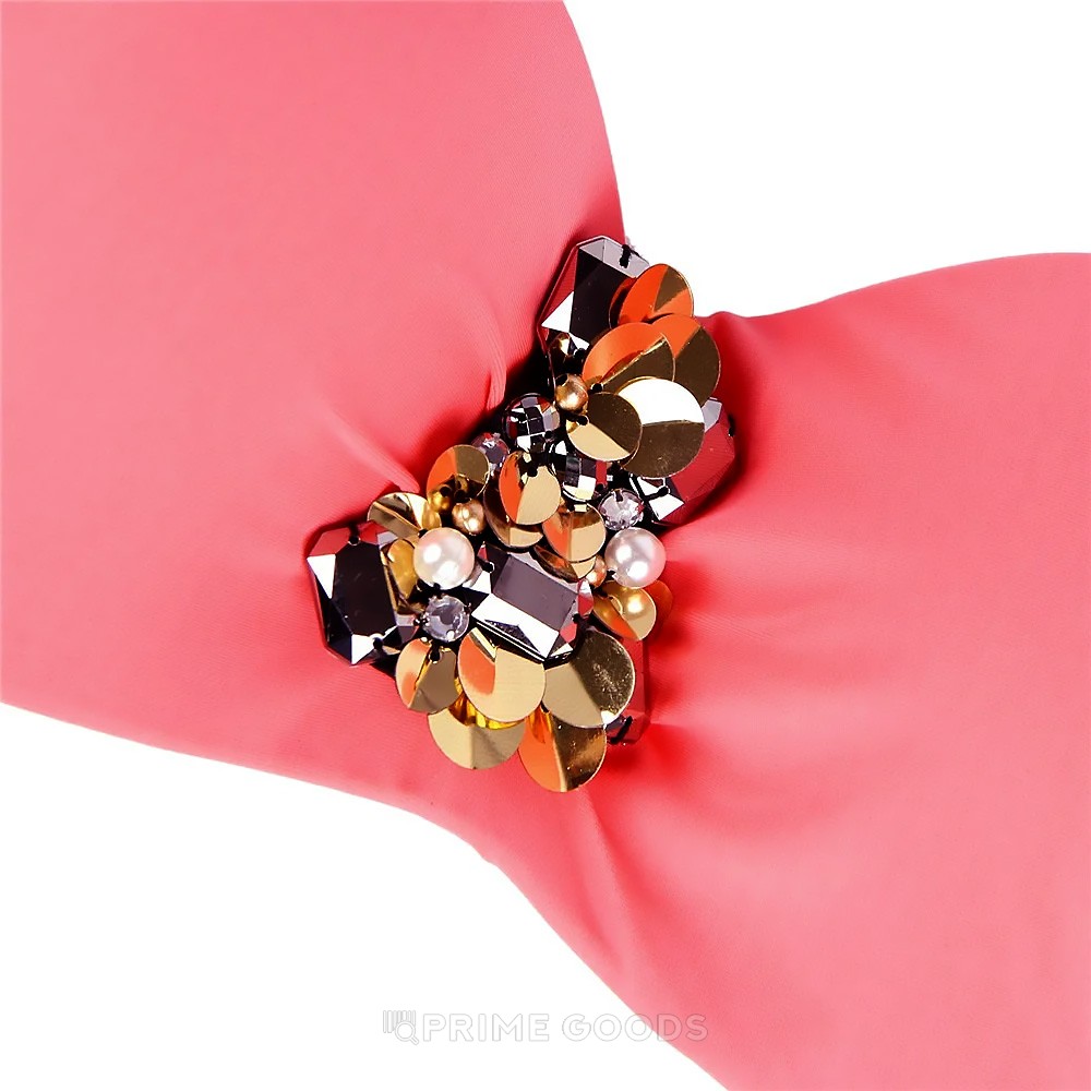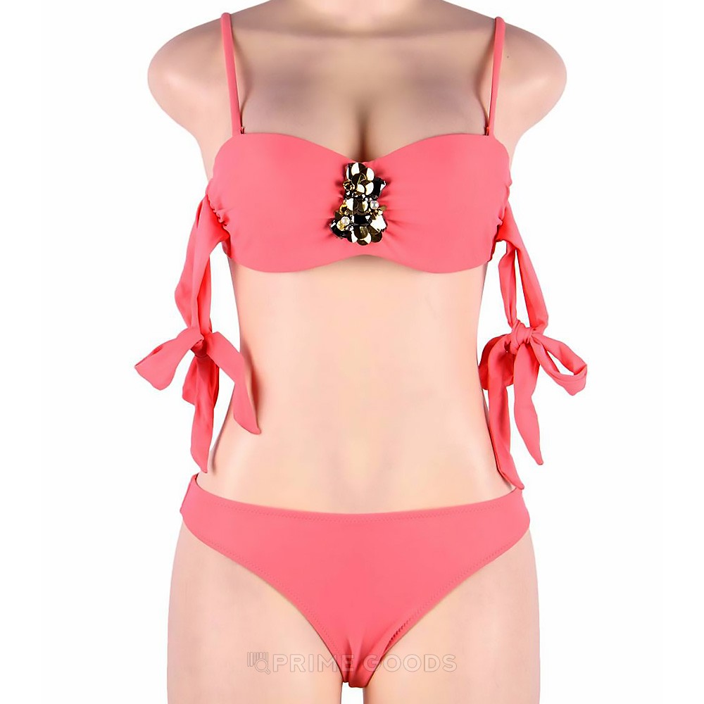 Очень классный и стильный купальник с завязочками на руках, украшенный стразами на груди. Выполнен в розовом цвете. Надежная застёжка на спине и трусики на средней посадке. Идеально подходит для пляжного отдыха! Очень красиво смотрится на любой фигуре! Для идеального отдыха, рекомендуем подобрать аквашузы у нас в интернет магазине!