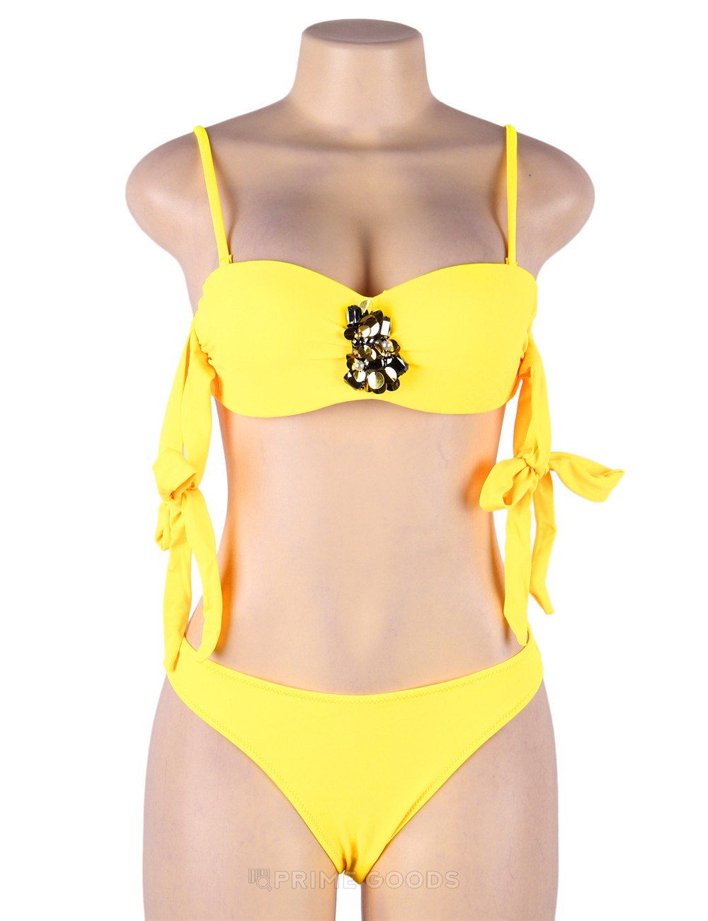 Этот купальник с завязками Rhinestone Yellow (XL) — идеальный выбор для тех, кто ценит стиль, комфорт и яркие акценты в летнем гардеробе.