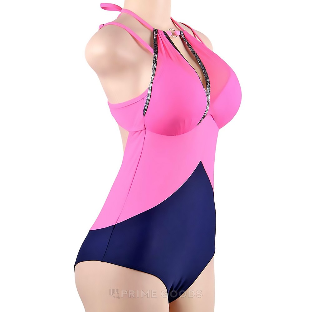 Купальник слитный, двухцветный: розового и темно синего. Грудь прикрыта сеткой, украшенная серебристой полоской. Имеется застежка на спине и завязки на шее. Спина открытая. Удобный купальник для отдыха на пляже! Для идеального и комфортного отдыха дополните купальник аквашузами, которые можно выбрать в нашем интернет магазине!