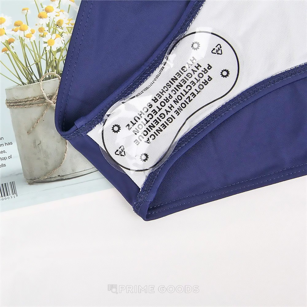 Купальник 3 в 1! Бюстгальтер + трусики в виде шорт в полоску и вторая пара трусиков темно синего цвета на завязках. Отличный выбор для тех, кто не любит однообразие! Вы можете вести активный отдых, так как форма купальника позволяет свободно двигаться. Или, вы можете сменить шорты на обычные трусики и купаться в свое удовольствие! Бюстгальтер с эффектом push up. Для более комфортного отдыха подберите аквашузы в нашем интернет магазине!