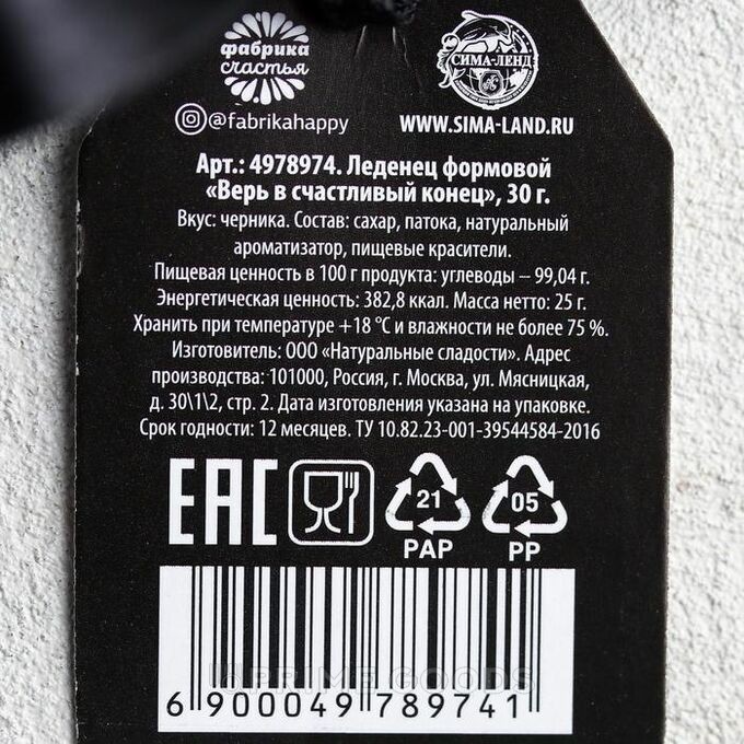 Леденец «Верь в счастливый конец», со вкусом черники, 30 г.
