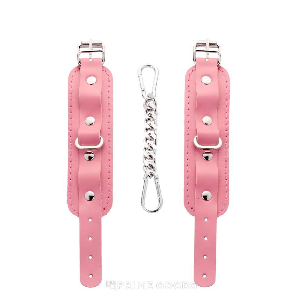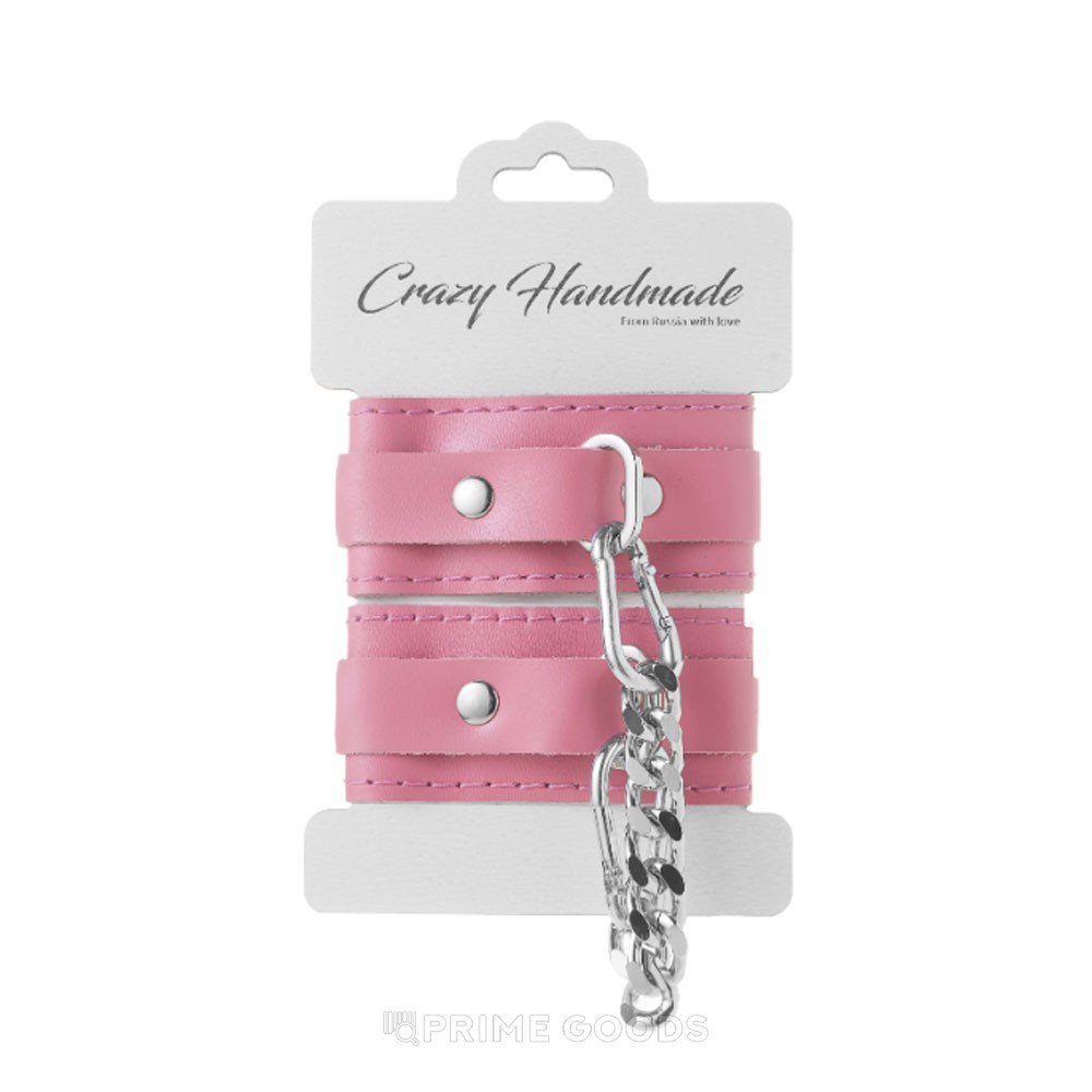 Наручники от Crazyhandmade выполнены из высококачественной натуральной кожи нежного розового оттенка, которая приятно ложится на кожу и дарит мягкость и комфорт при использовании. Надёжная стальная фурнитура с элегантным серебристым покрытием придаёт аксессуару прочность и стильный внешний вид, а включённая соединительная цепочка с двумя карабинами делает наручники универсальными для любых сценариев.