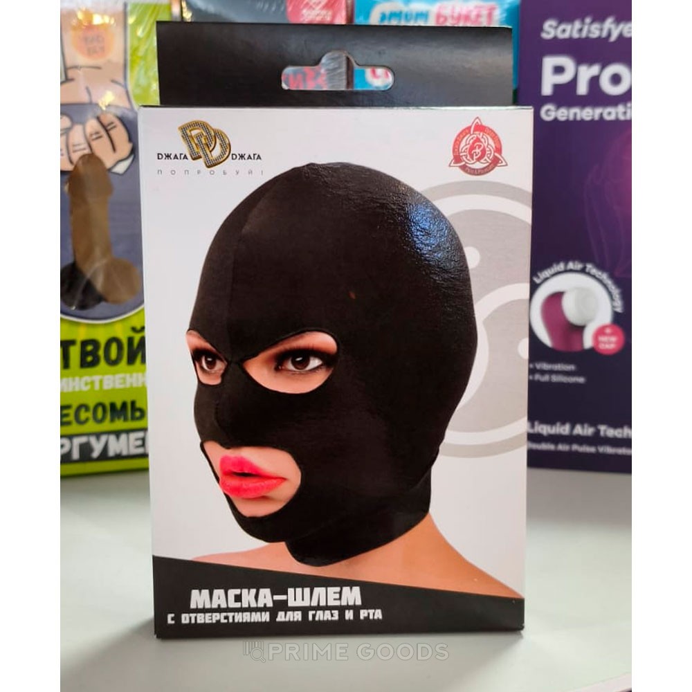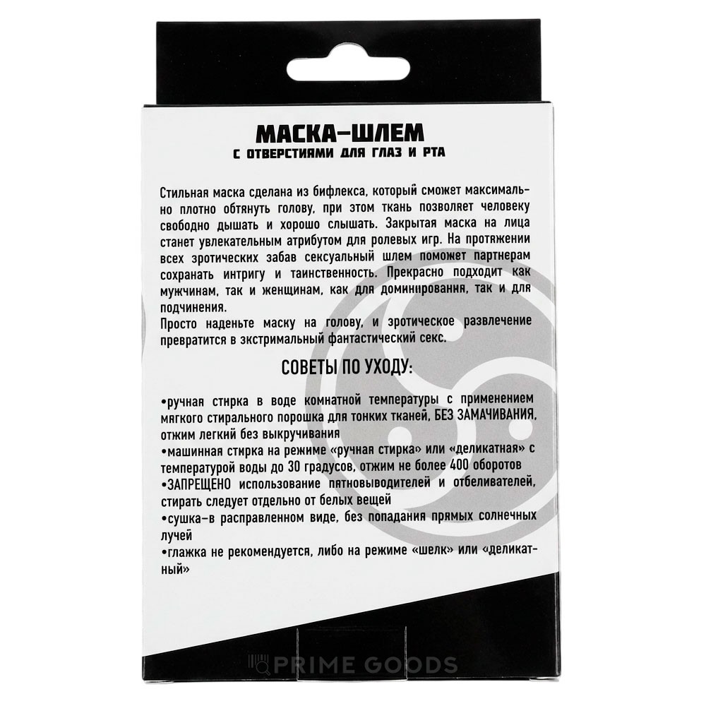 Маска-шлем с отверстиями для глаз и рта от Jaga-Jaga — стильный аксессуар для ролевых игр и БДСМ-сессий, созданный для усиления ощущений и погружения в атмосферу доверия и контроля.