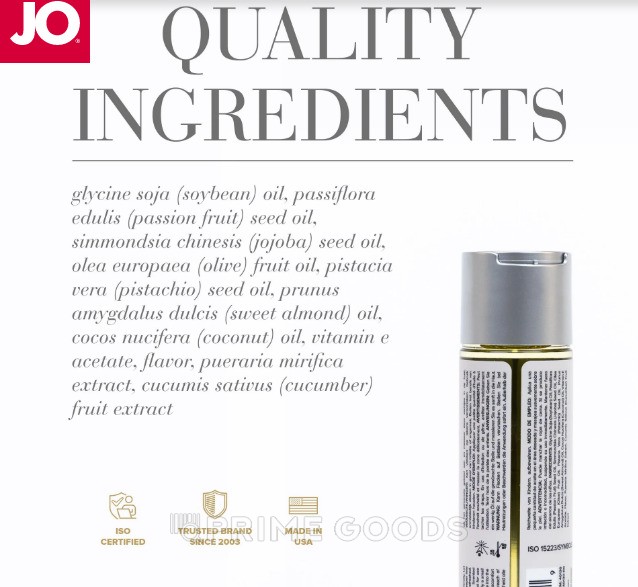 Состав: Соевое масло, натуральные пищевые ароматизаторы, витамин Е, масло семян плодов пассифлоры, масло семян цветка пассифлоры, оливковое масло, масло семян жожоба, кокосовое масло, масло семян фисташки, миндальное масло, глицерин, вода, экстракт корня пуэрария мирифика, огуречный экстракт, эстратетраенол.