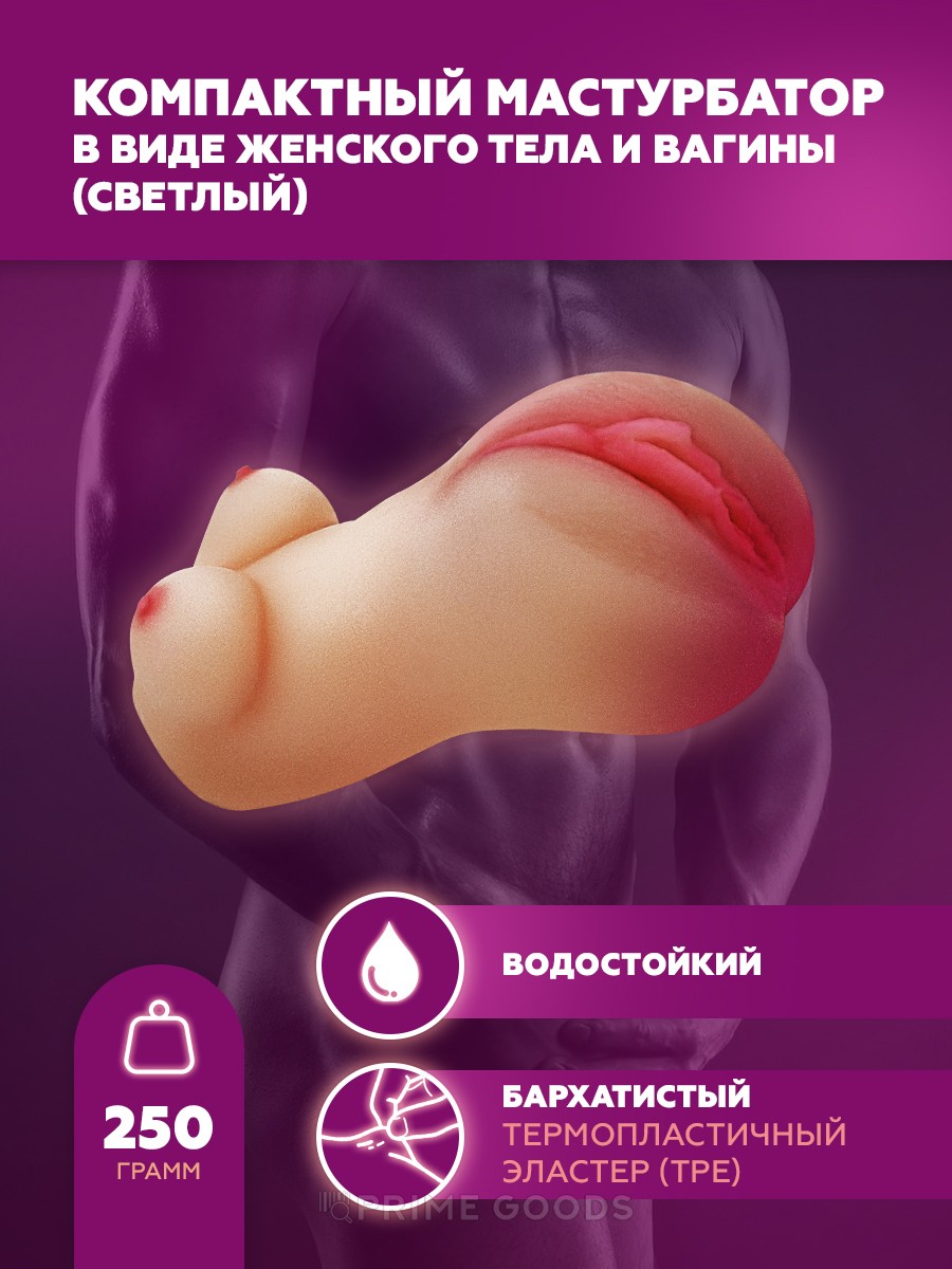 - Мастурбатор компактный, женский торс с вагиной, светлый