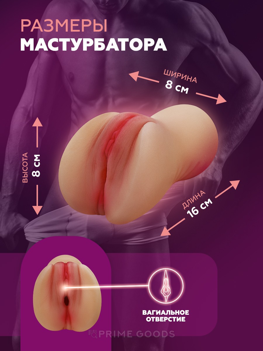 • реалистичная форма с аккуратными половыми губами и клитором для визуальной и тактильной стимуляции